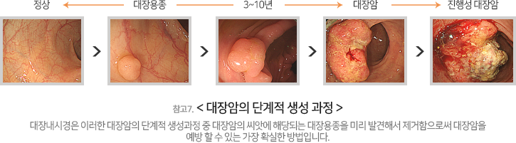 대장암을 초기에 발견해 내려면 대장내시경은 필수입니다. 적어도 2년에 한 번 대장내시경을 받아 이상이 없나 확인해 봐야 합니다. CT촬영으로 혹이 보이거나 하는 경우가 있지만, 사실 초기에 CT로 혹을 잡아내기는 매우 힘들다고 합니다. 가장 정확한 건 의사가 눈으로 볼 수 있는 대장내시경이니 건강검진 시 꼭 받으시기 바랍니다.
