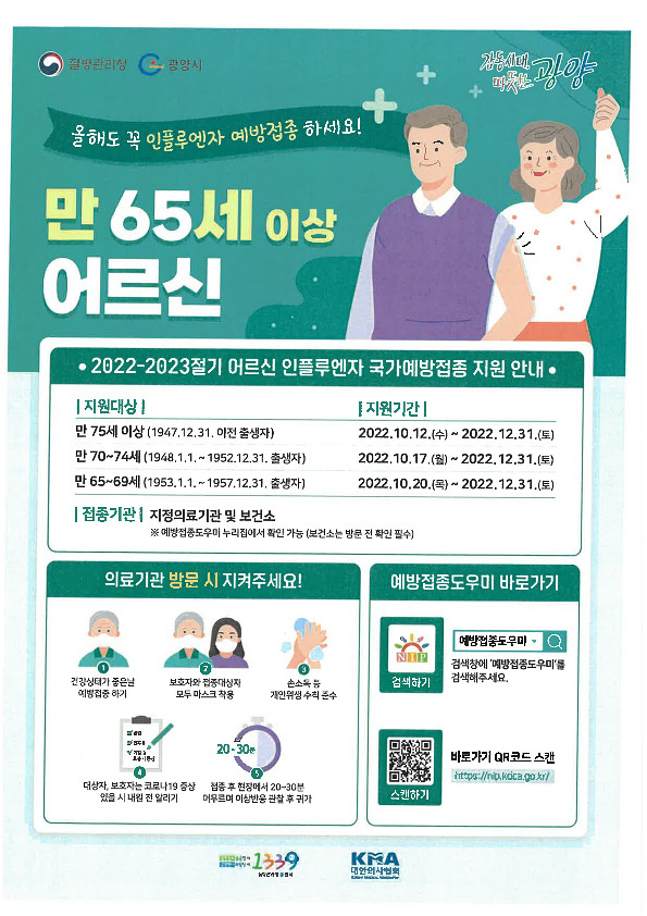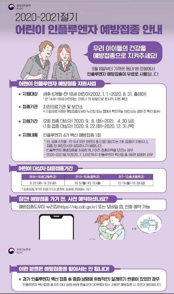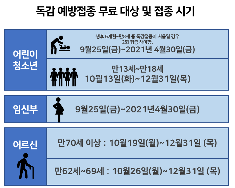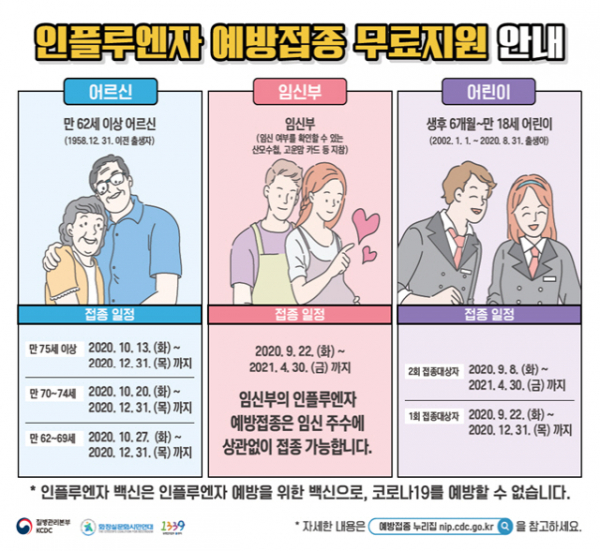 취약계층(어린이, 임신부 등)이나 65세 어르신들에게는 무료 예방접종이 되기 때문에 발 빠르게 움직이시기 바랍니다.