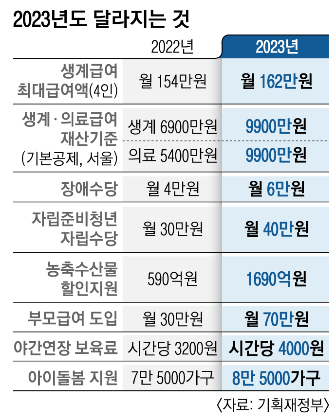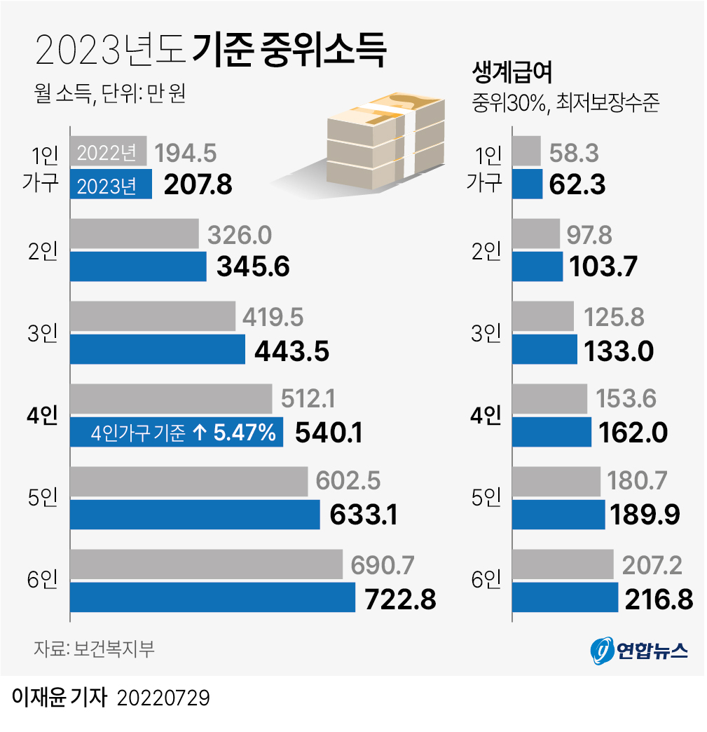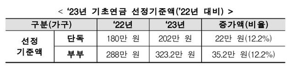 또한 월 소득인정액이 단독 가구시 202만 원, 부부 가구 시 323만 5천 원 이하여야 하며 이는 2022년 대비 재산 상승률 등을 고려해 약 12.2% 상승한 결과입니다.