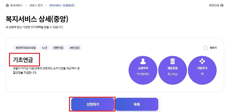 이때, 신청하시는 항목이 '기초연금'이 맞는지 한번 더 확인하시고 클릭하시길 바랍니다.