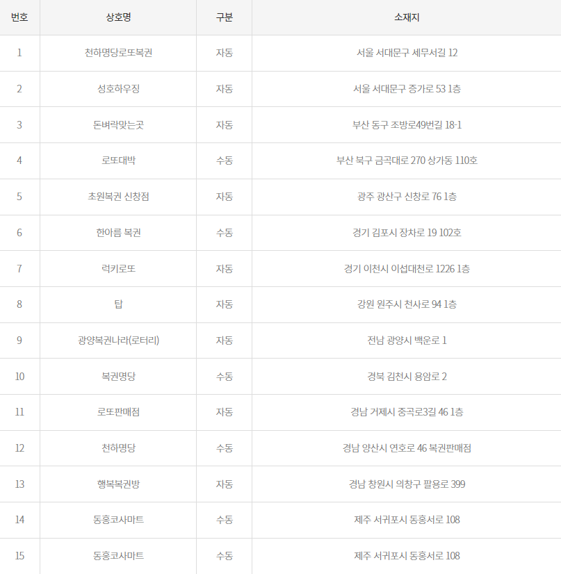 - 추첨일 오후 8시부터 다음날(일요일) 오전 6시까지는 판매가 정지
