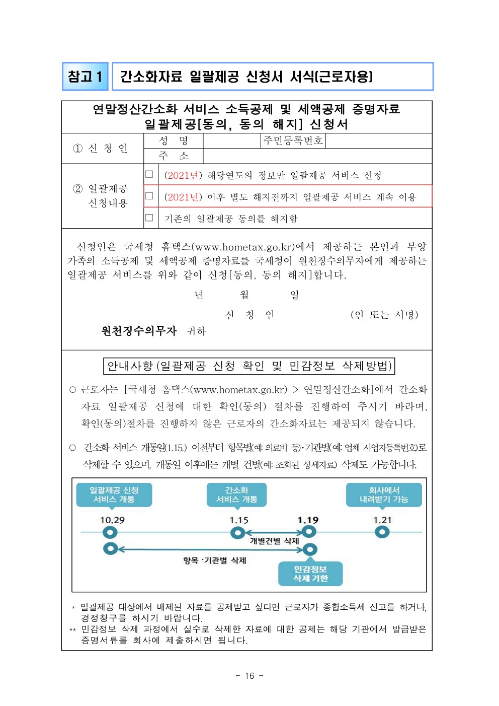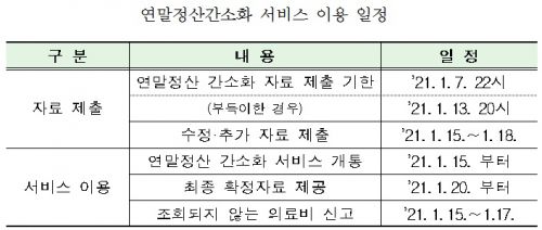 - 국세청에서 근로자 확인 절차가 마무리되면 회사에 간소화 자료 제공
