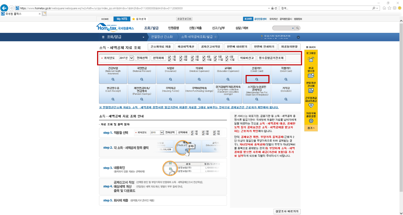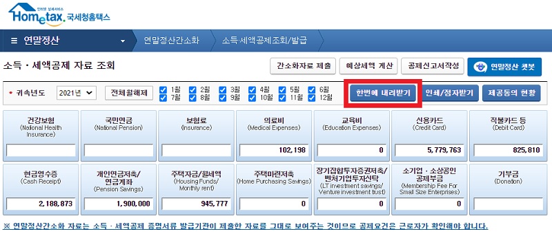 - 2021년 지급명세서 불러오기 ► 신용카드 자료 불러오기 ► 계산하기