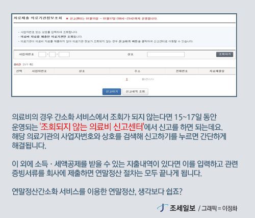 이런 고충들로 인해 국세청에서는 보다 간소화된 연말정산 서비스를 제공하고 있습니다.