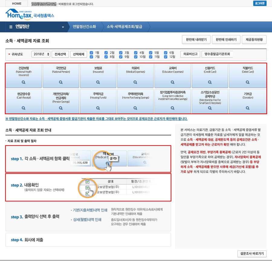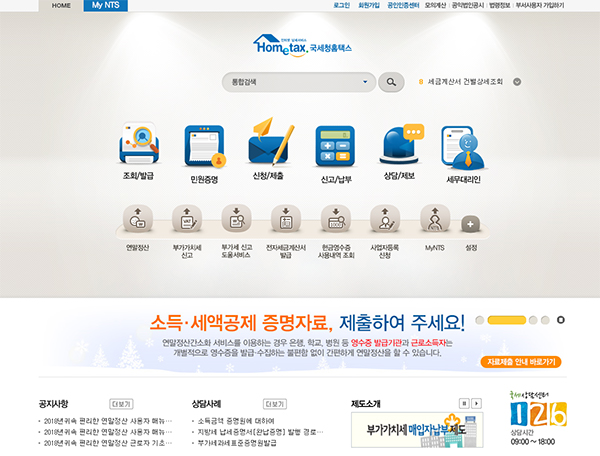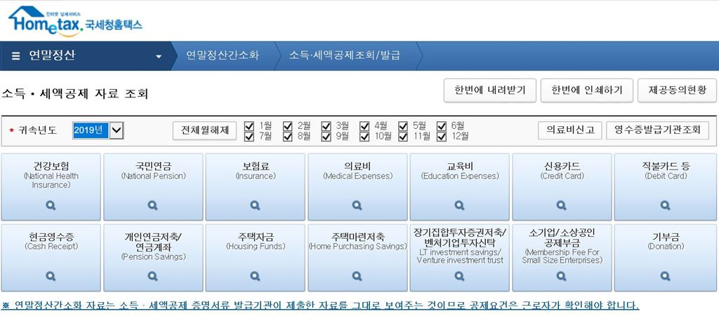 저희가 13월의 월급을 받으려면 지금까지 직장에서 원천징수된 세금을 소득공제를 통해 내었던 세금을 다시 돌려받기 위해서 그의 반한 자료가 필요합니다. 그 자료들이 "홈택스"에 존재하기 때문에 이 홈페이지를 자주 잘 활용해주시면 보다 더 편하게 진행하실 수 있습니다.