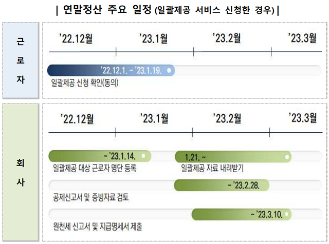 - 간소화 서비스를 희망하는 회사는 2022년 11월 30일까지 근로자 명단 등록