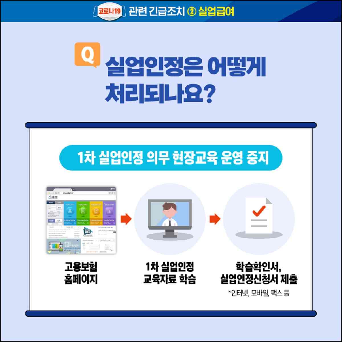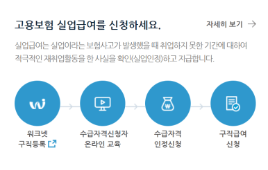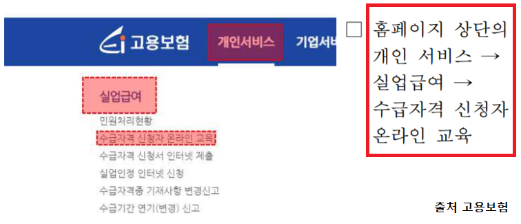 구직등록 후, 수급자격 신청교육 이수하셔야 합니다. 실업자와 구직자를 위해 고용보험에서 온라인 교육을 진행 중입니다. 거주지 관할 고용센터 직접 방문을 통해서도 수강이 가능합니다.