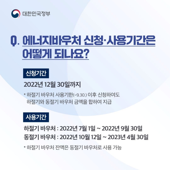 에너지 바우처 신청기간은 22.5.25. ~ 23.2.28일까지 입니다.
