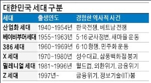 MZ세대는 태어난 년도를 분류해 놓은것입니다.